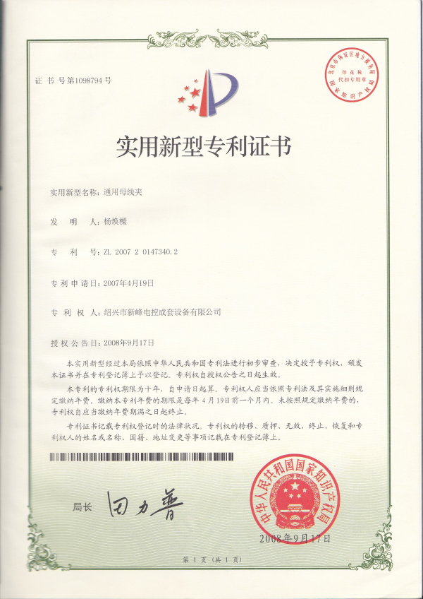 ZL 2007 2 0147340.2s-企業(yè)專利證書