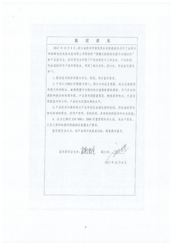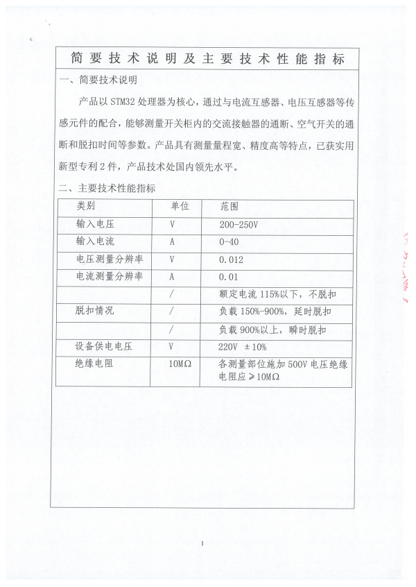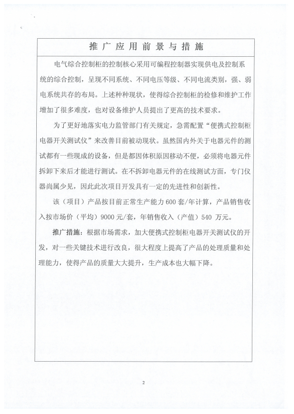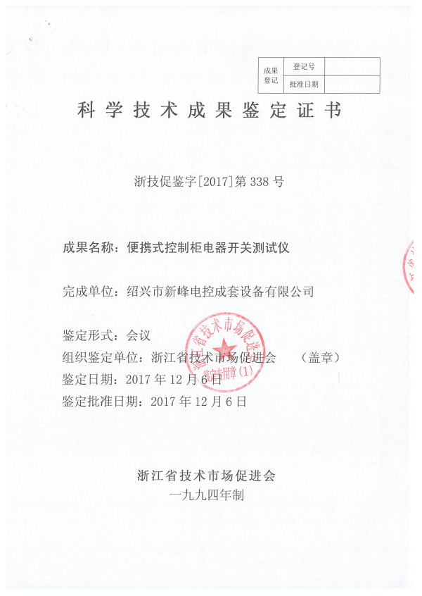 便攜式控制柜電器開關測試儀-新產品科技證書