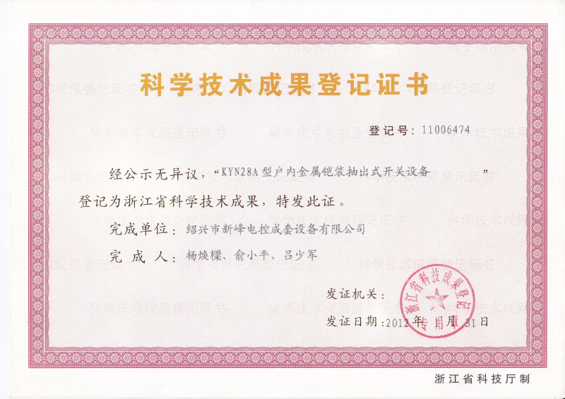 科技成果證書2012 11006474-新產(chǎn)品科技證書