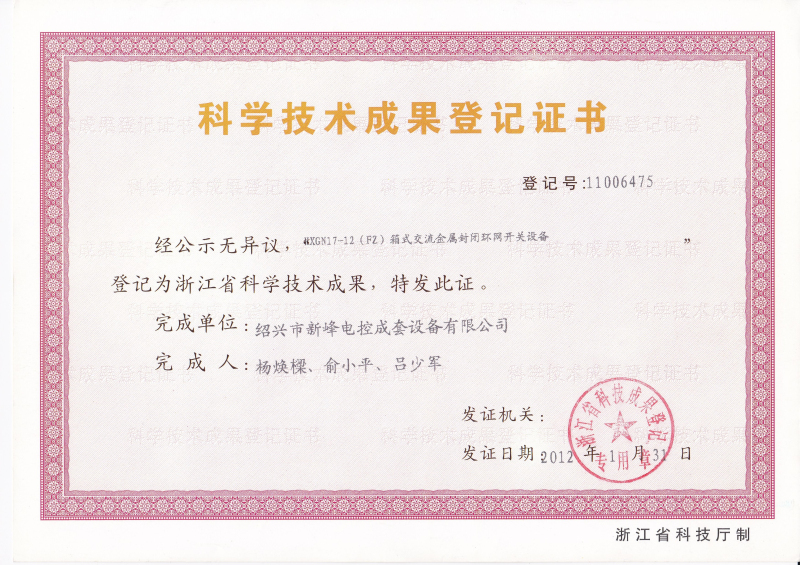 科技成果證書(shū)2012 11006475